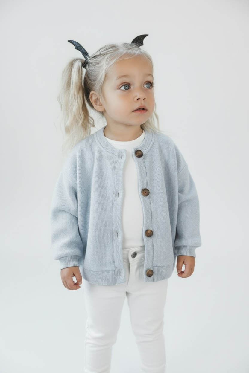 Stilingas, gražaus, neutralaus dizaino, švelnaus audinio bei išskirtinio patogumo kardiganas vaikams, tinkantis berniukams ir mergaitėms.