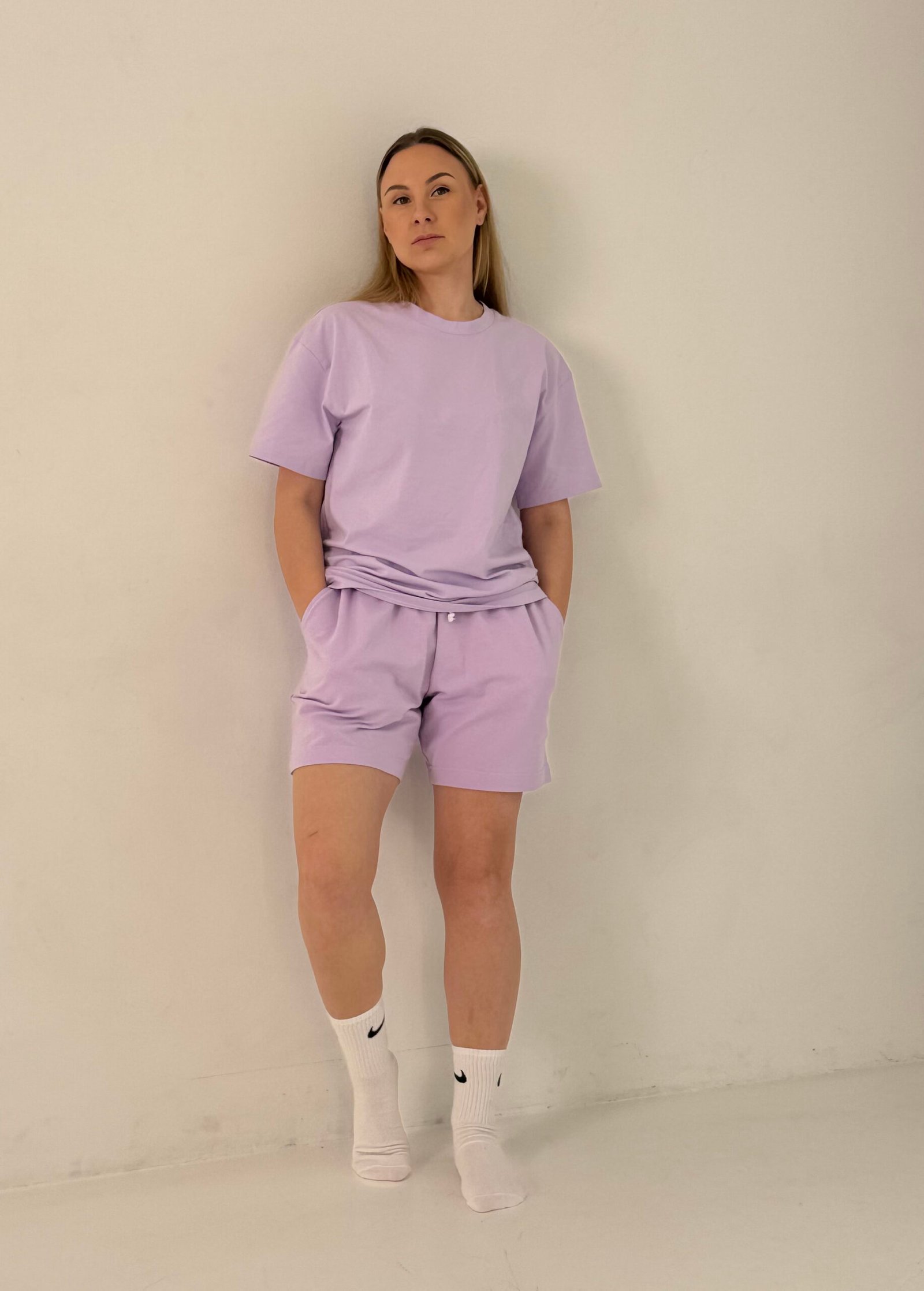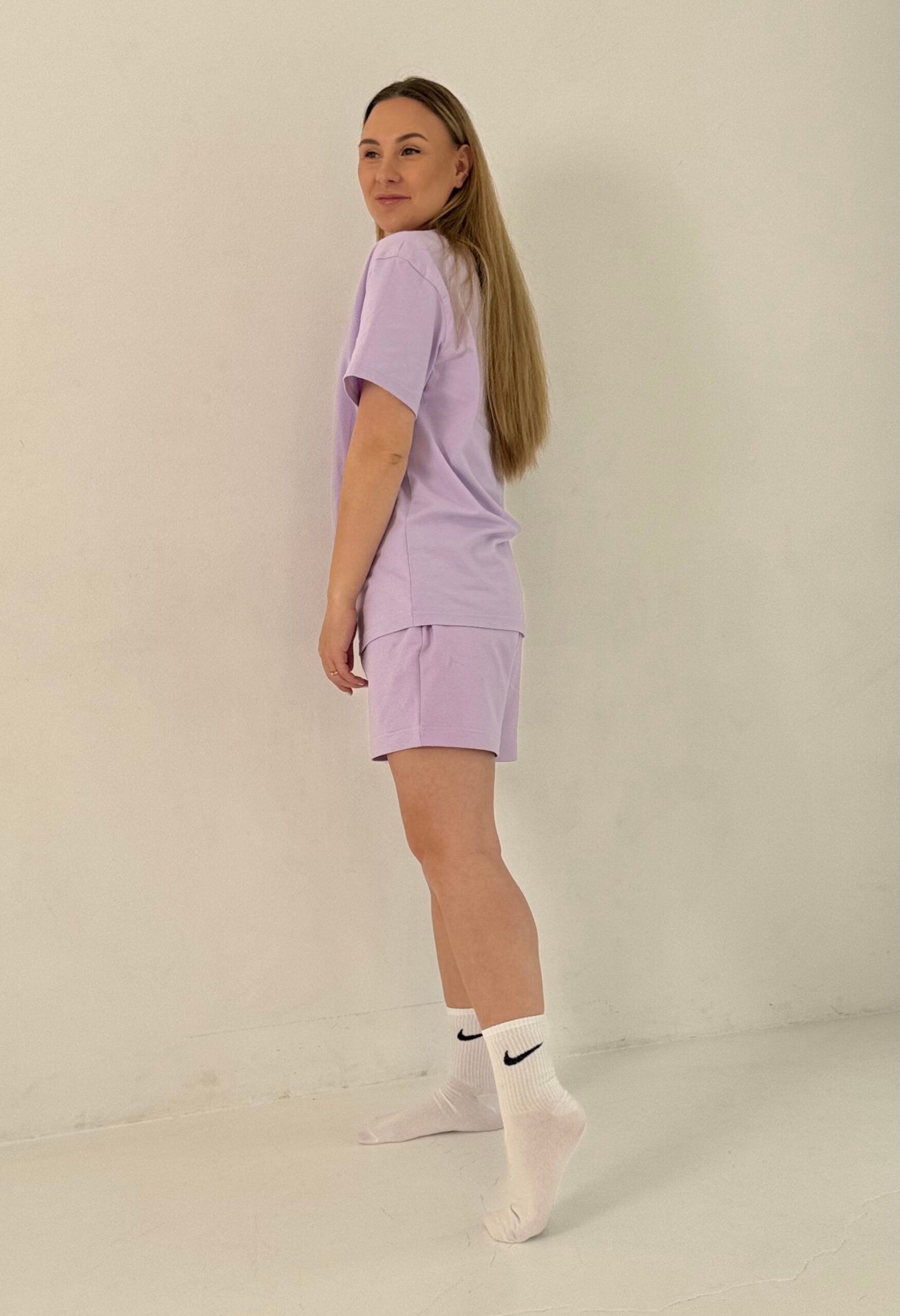 Kostiumėlį sudaro: oversized marškinėliai ir šortai