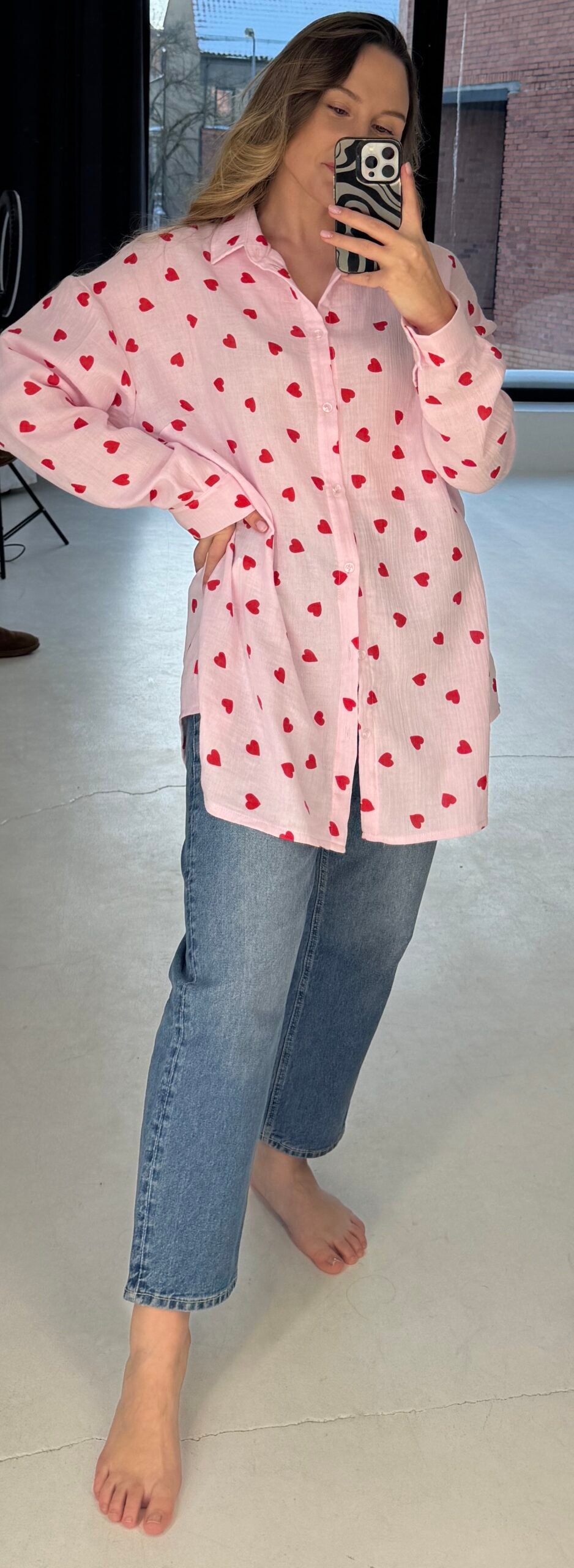 Laisvo silueto dizainas nevaržo judesių, o subtilus raštas suteikia žaismingumo ir jaukumo pojūtį. Marškiniai yra prailginti, todėl jiems nereikia kelnių ar šortų, jeigu naudojama kaip miego ar namų laisvalaikio rūbas. Gražiai atrodo tiek derinami su džinsais ar šortais, tiek kaip pižama. Tai universalus drabužis, kuris lengvai prisitaiko prie skirtingų gyvenimo akimirkų – nuo ryto kavos iki vakaro ritualų.