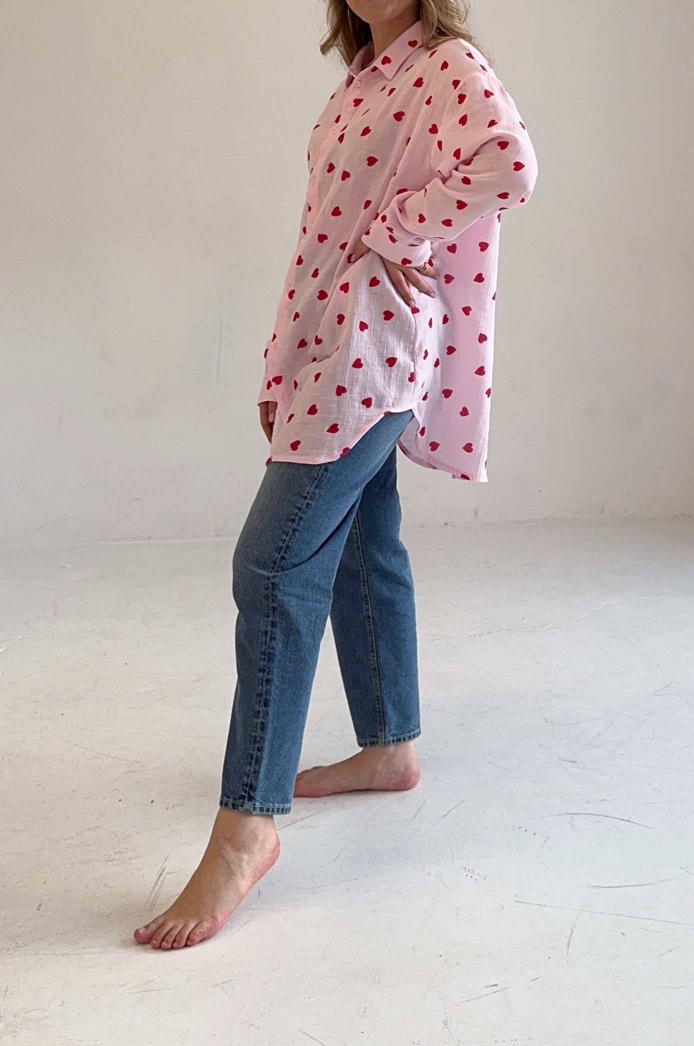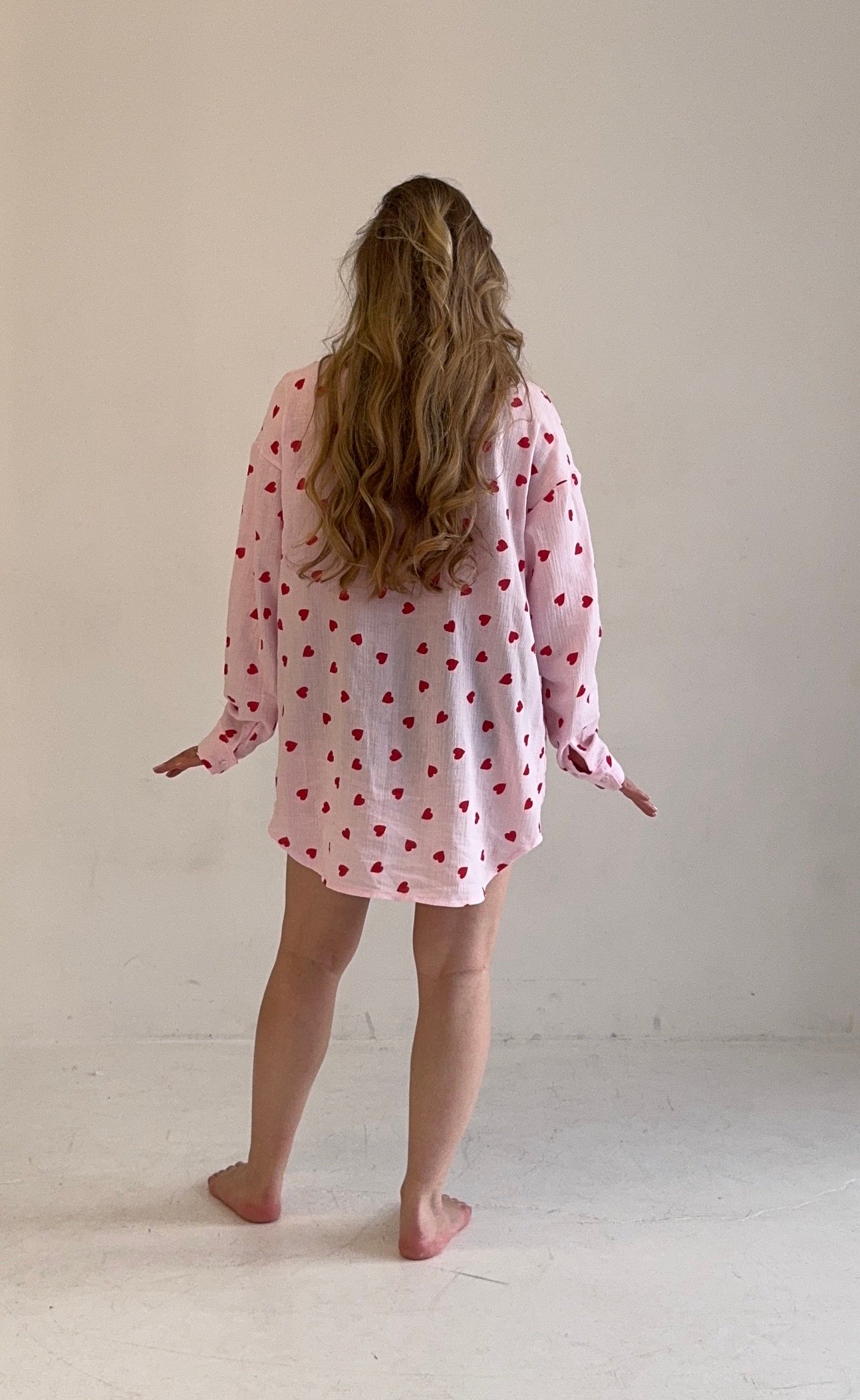 Švelnūs, lengvi ir be galo jaukūs – šie muslino marškiniai sukurti tiek ramiems namų vakarams, tiek stilingam laisvalaikiui. Natūralus muslino audinys leidžia odai kvėpuoti, yra malonus prisilietimui ir puikiai tinka jautriai odai, todėl marškiniai idealiai tinka ir miegui, ir kasdieniam dėvėjimui.