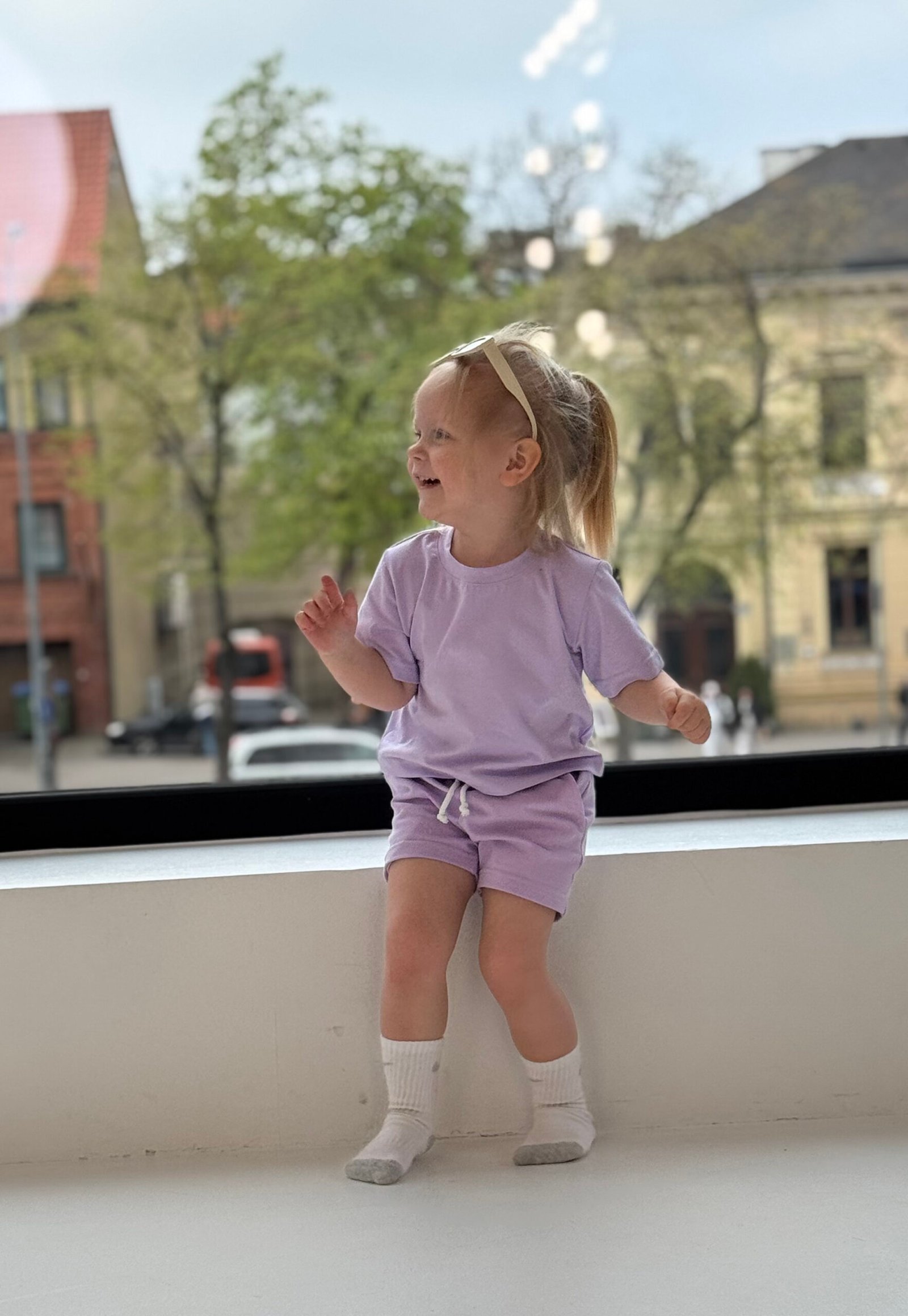 Kostiumėlį sudaro: oversized marškinėliai ir šortai