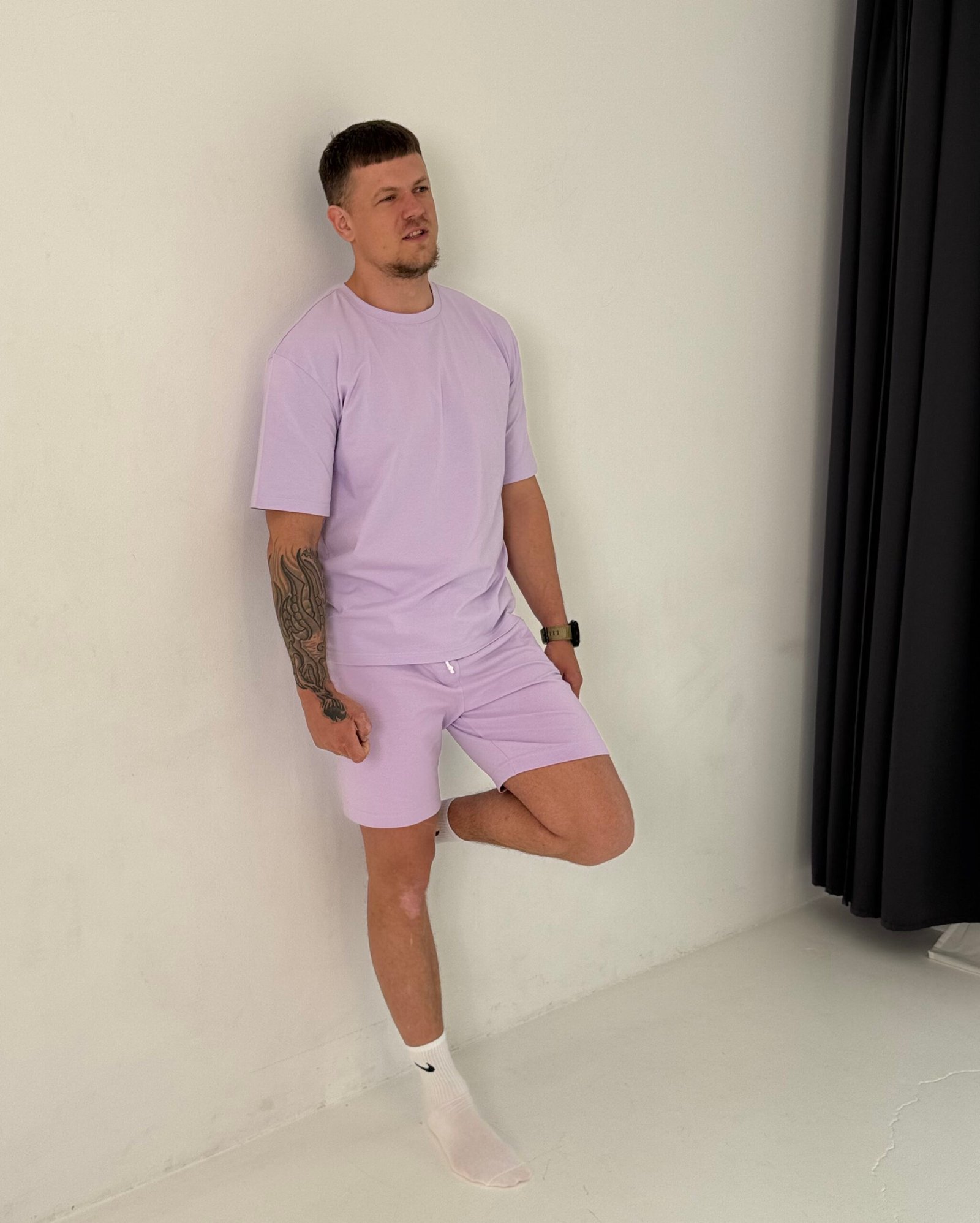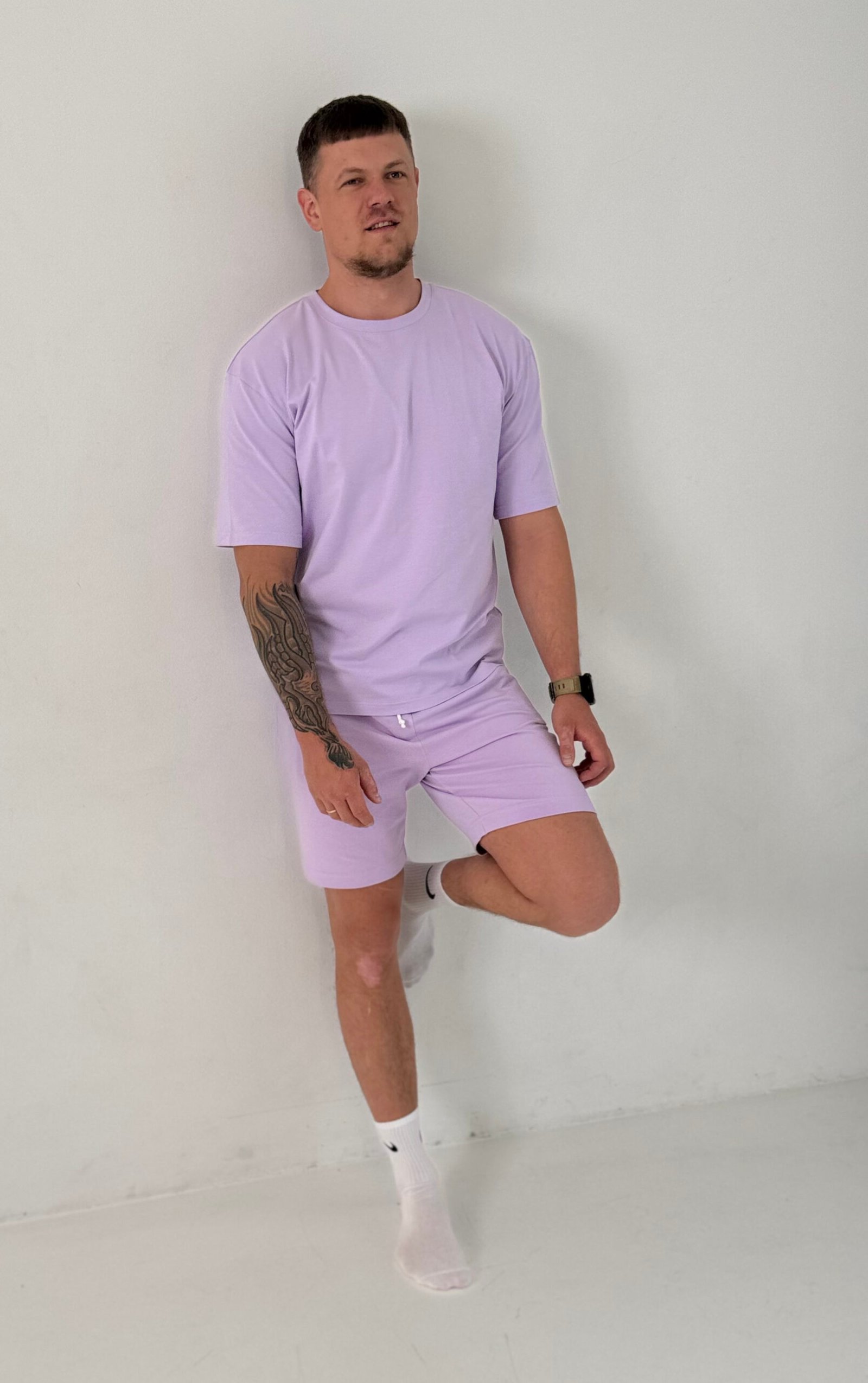 Kostiumėlį sudaro: oversized marškinėliai ir šortai
